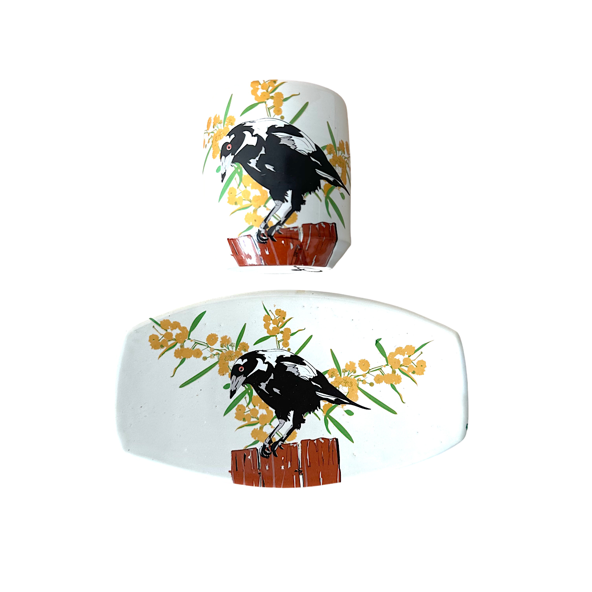 Hand-painted and silkscreened porcelain. Made at the Blue House Porcelain studio in Brisbane.